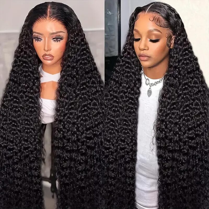 20inch 13×6 Lace Front Wigs Pre Plucked 250% Density Water Wave HD Transparent Curly Lace Frontal Wet and Wavy Human Hair Wigs With Baby Hair Natural Black