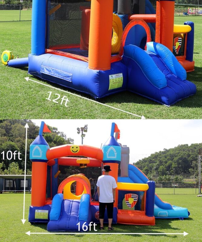 16x12FT Commercial Grade Bounce House Castle Inflatable, (Heavy Duty PVC), (950w Blower)- 2 Slide, Ball Pit, Basketball Hoop, Obstacle-Bouncy House for Big Kid 5-12, Outdoor Party Toy Pool Backyard