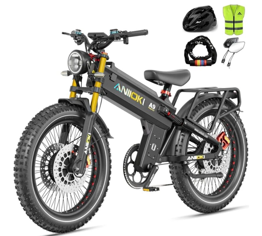 ANIIOKI Dual Motor Electric Bike for Adults, 46MPH with 52/60V | Battery | Fat Tire All Terrain | Full Suspension | 7-Speed Gear | 70/80AH Battery Capacity