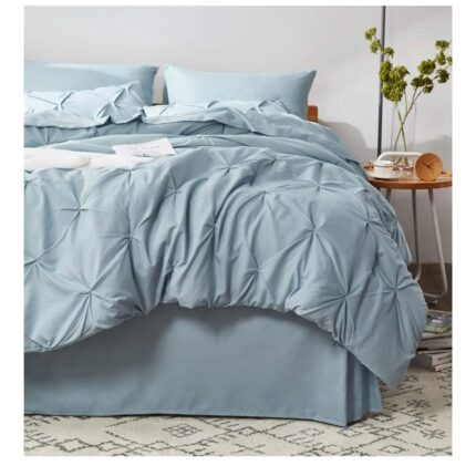 8Pcs Pinch Pleated Comforter Bedding Collection 100% Cotton 500 GSM in A Bag 1Comforter,1Fitted Sheet 15”DP,1Flat Sheet,2Pillow Shams,2Pillow Cases,1Pleated Bed Skirt 15”Drop,Twin/Pinch Light Blue