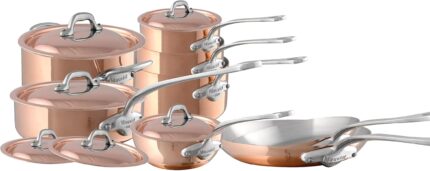 Mauviel M’Heritage 150 S 1.5mm Polished Copper & Stainless Steel 14-Piece Cookware Set With Cast Stainless Steel Handles And Curved Lid, Made In France