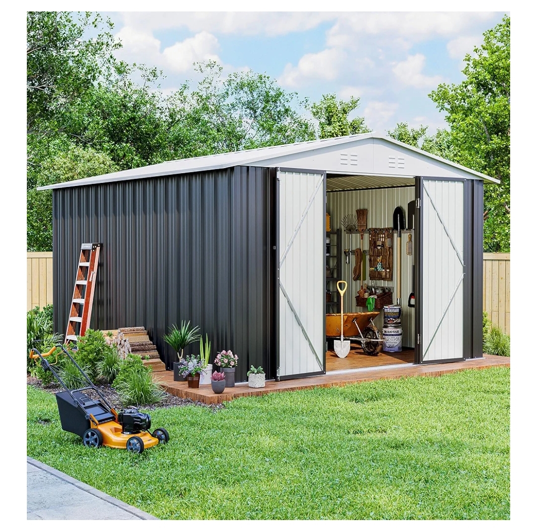 1 review for 10×12 FT Outdoor Storage Shed, Garden Shed with Updated Frame Structure and Lockable Doors, Metal Tool Sheds for Backyard Garden Patio Lawn, White