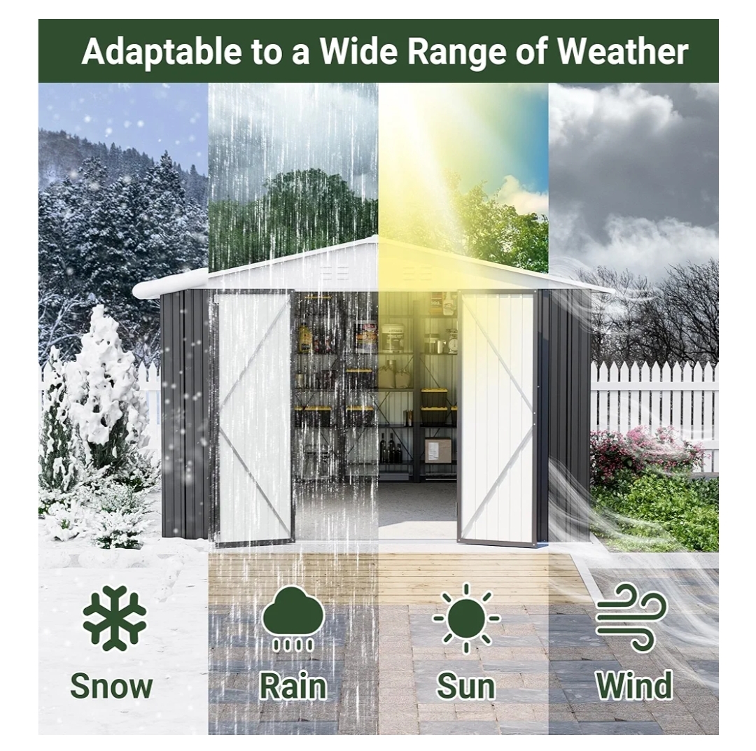 [Selection of Premium Materials] Outdoor sheds are made up of high-grade color steel sheets, they are tough and not easy to deform. Effectively block ultraviolet rays and rainwater intrusion.