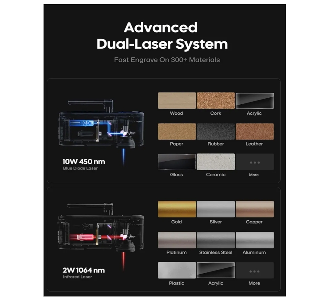 Industry-Leading Expandable Workspace (160x300mm): Dual infrared + diode lasers handle 10+ materials simultaneously. Slide extension creates 2.6x larger area than standard engravers – perfect for batch engraving jewelry & plaques.