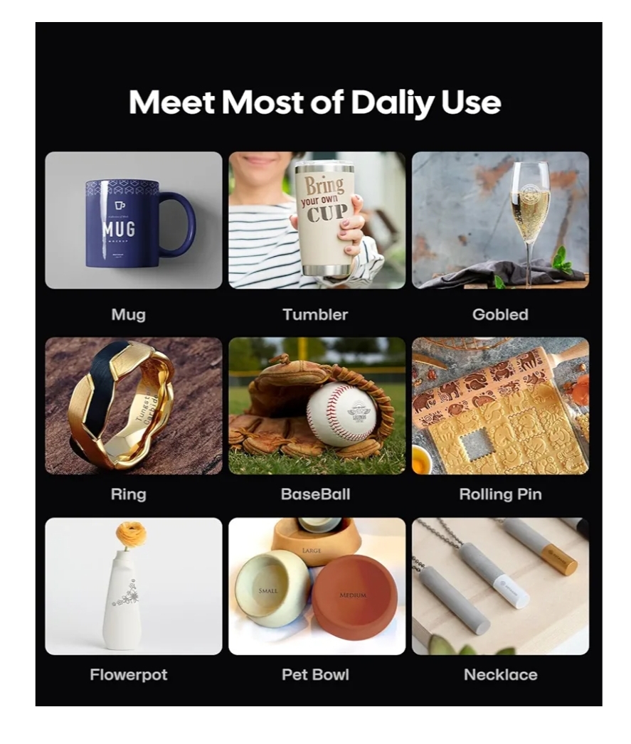 Complete Rotary Solution for Curved Surfaces: Professional rotary kit engraves Ø0-145mm items with 3° accuracy. Includes industrial-grade clamps – 56% faster setup than basic rotary attachments.