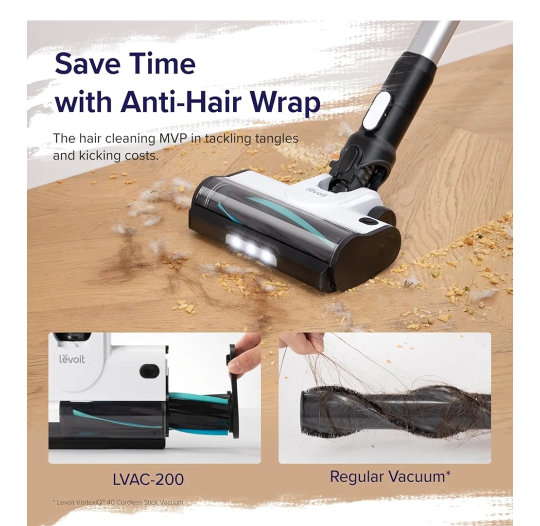 LEVOIT Cordless Vacuum Cleaner, Stick Vac with Tangle-Resistant Design, Up to 50 Minutes, Powerful Suction, Rechargeable, Lightweight, and Versatile for Carpet, Hard Floor, Pet Hair, LVAC-200