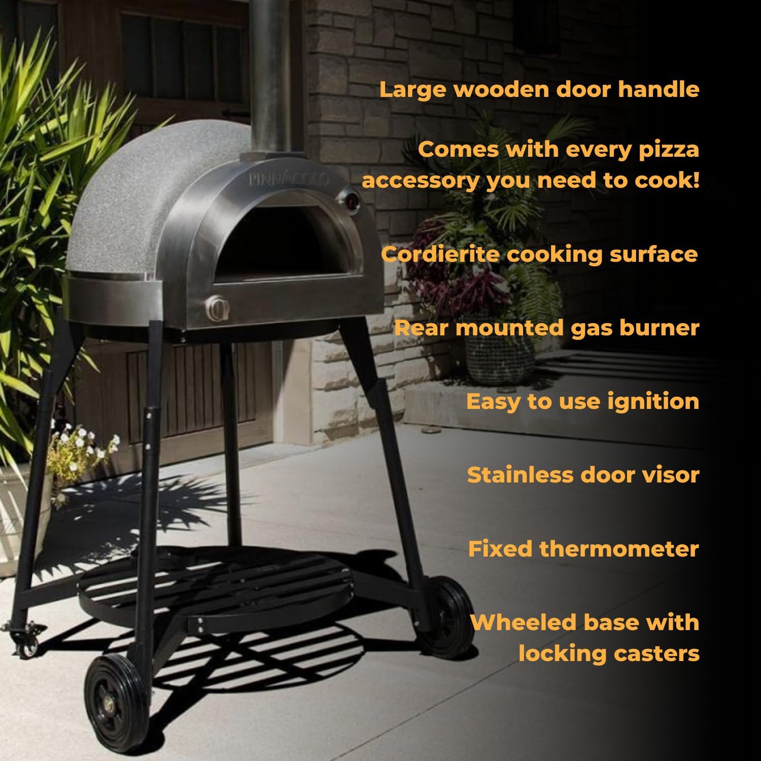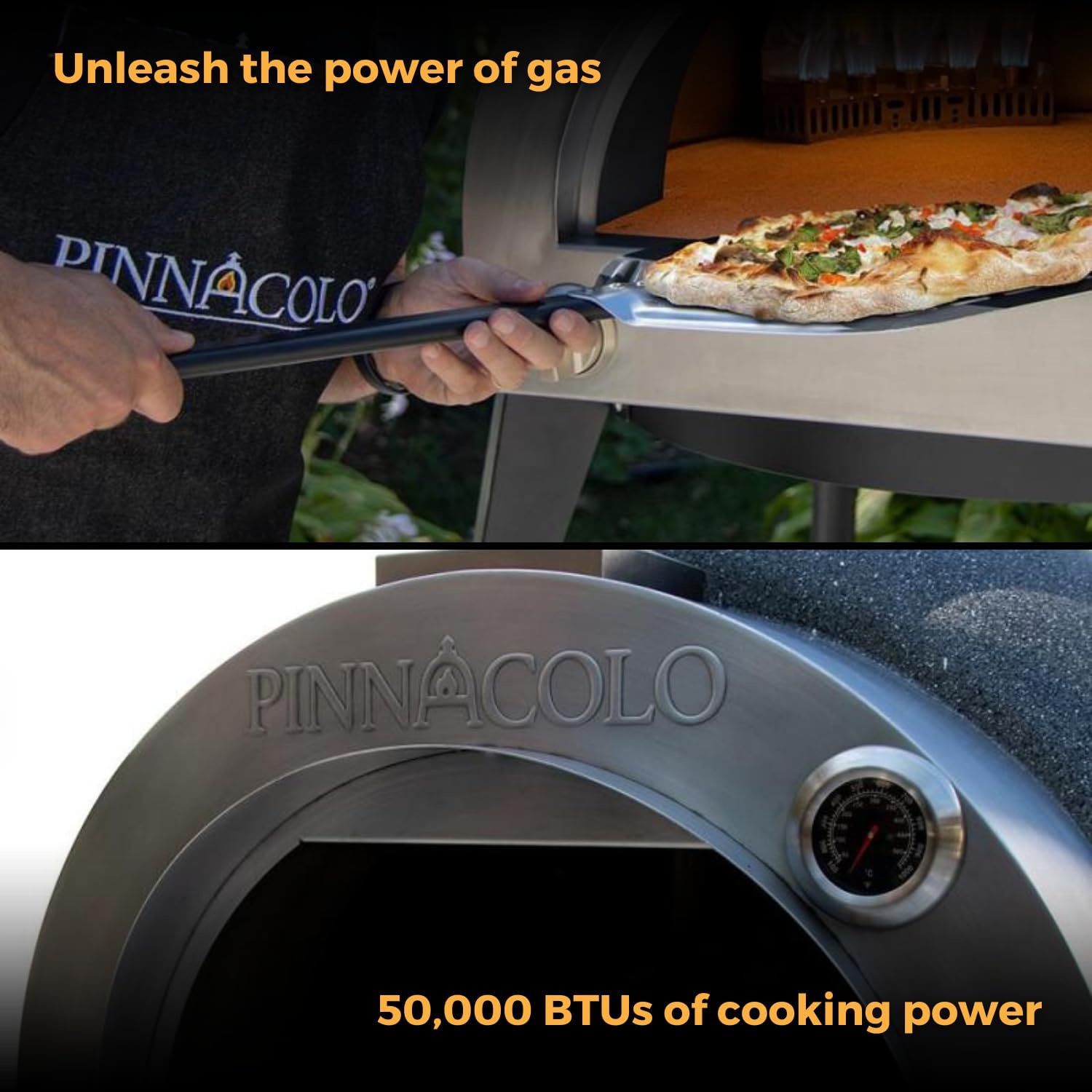 • Introducing PINNACOLO L’ARGILLA — a gas-powered oven heats up in under 10 minutes, thanks to its 50,000 BTUs of cooking power. The 26.5” diameter interior provides ample space to cook 2+ pizzas at once! CSA approved for long-lasting and secure use.